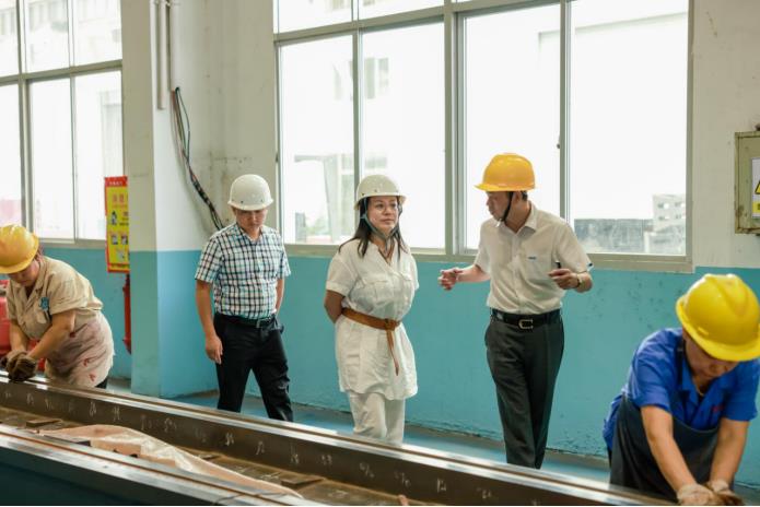 在翁強(qiáng)董事長(zhǎng)陪同下,張利華秘書(shū)長(zhǎng)一行走訪參觀了公司新廠、影音室、2#車(chē)間、4#智能車(chē)間“黑燈工廠”、5#車(chē)間以及公司早會(huì)室。她對(duì)公司別具特色的企業(yè)文化,現(xiàn)代一流的企業(yè)設(shè)備條件,底蘊(yùn)深厚的企業(yè)精神,育人氛圍濃郁的企業(yè)環(huán)境等再次給予高度評(píng)價(jià)。
